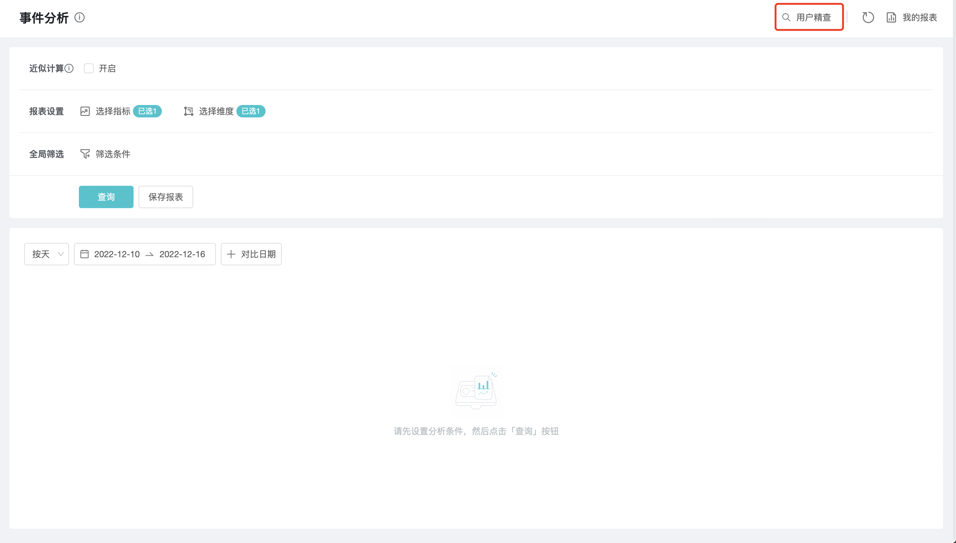 用户精查用于精细排查符合某一类特征或某一确切用户的行为表现。