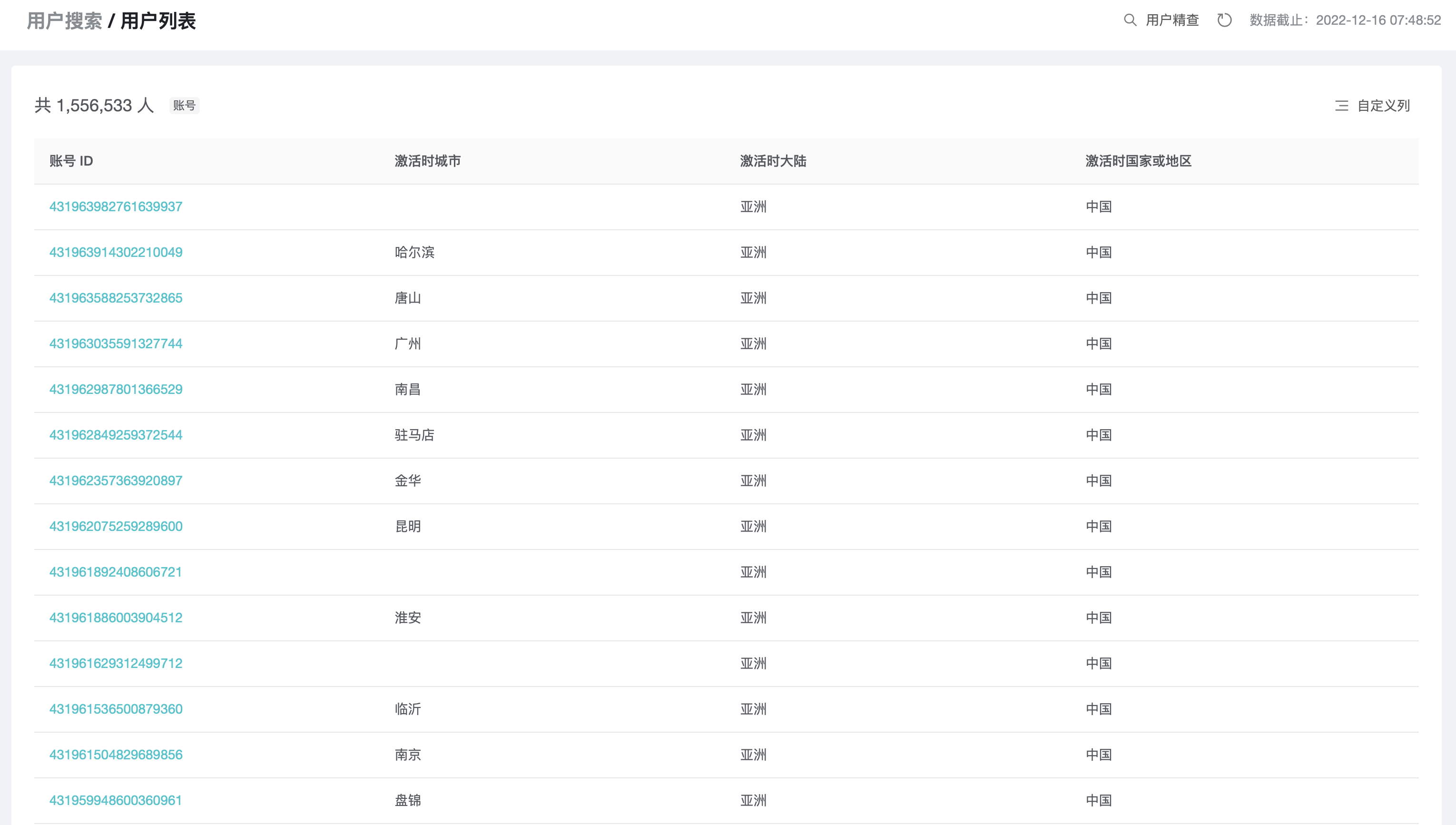 点击右上方「用户精查」,开启用户精查界面: