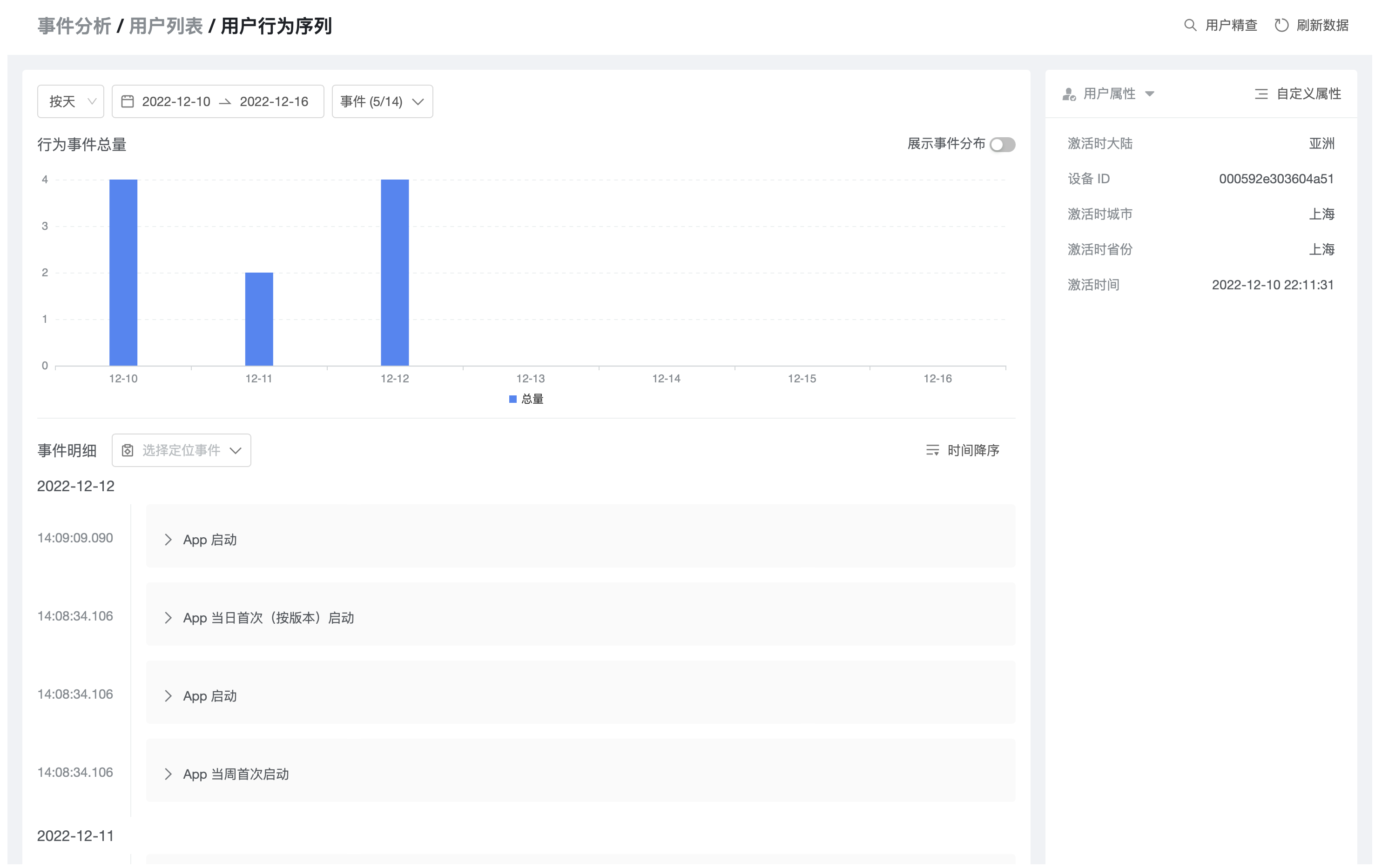 在用户列表中点击用户 ID 可进入用户行为序列查询: