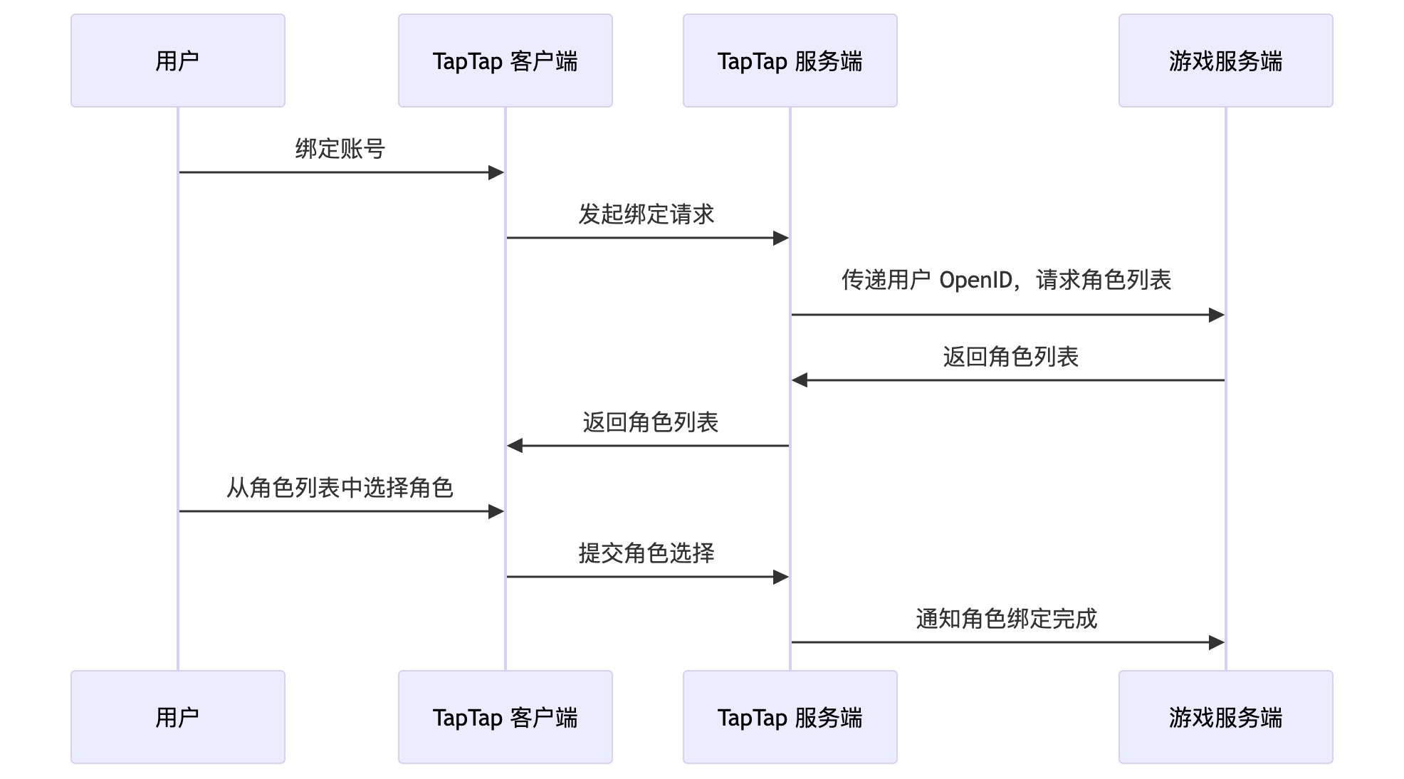 | TapTap 账号体系 | 适用场景:游戏已接入 TapTap 登录,账号系统存储了 open_id 或 union_id | 获取角色列表接口 |