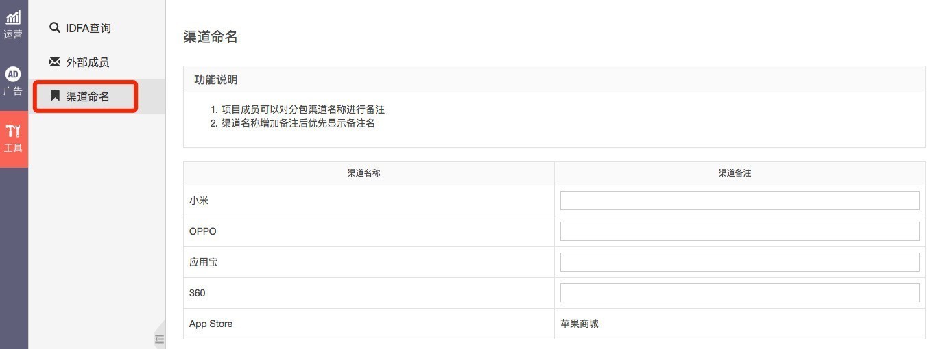 为渠道命名