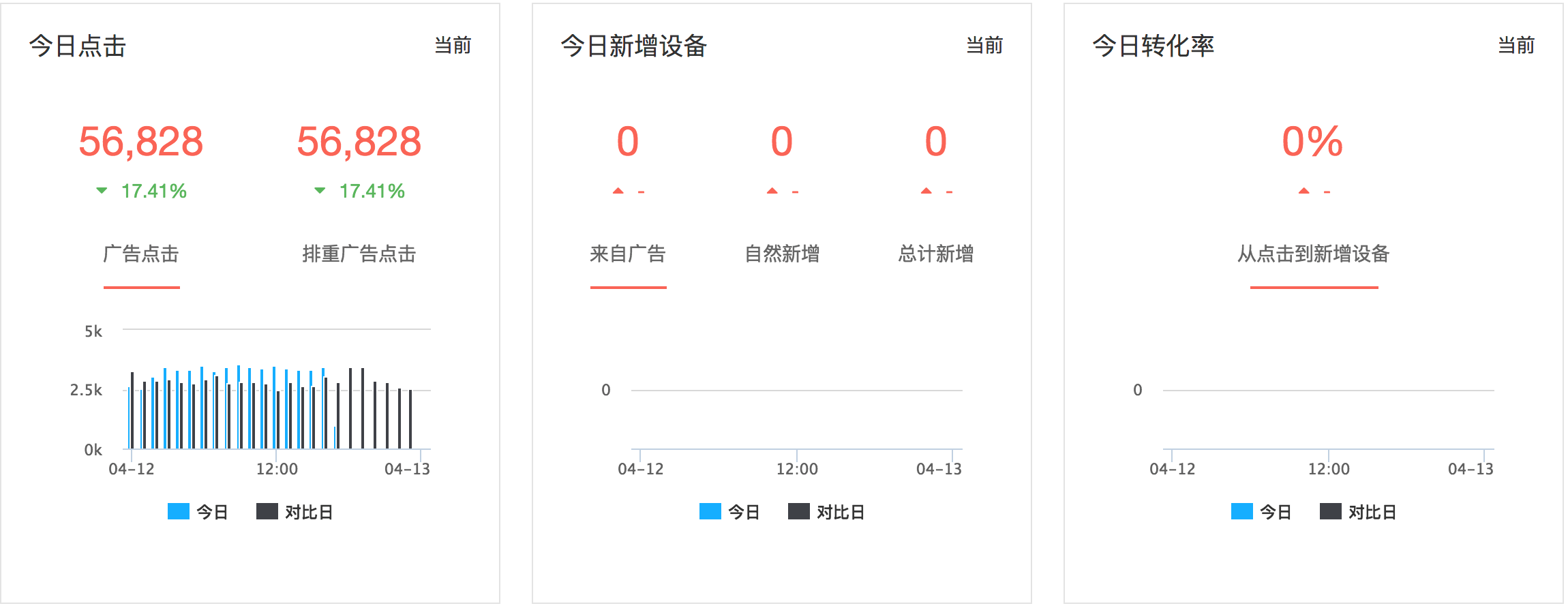 • 监控今日的点击、新增、转化是否正常