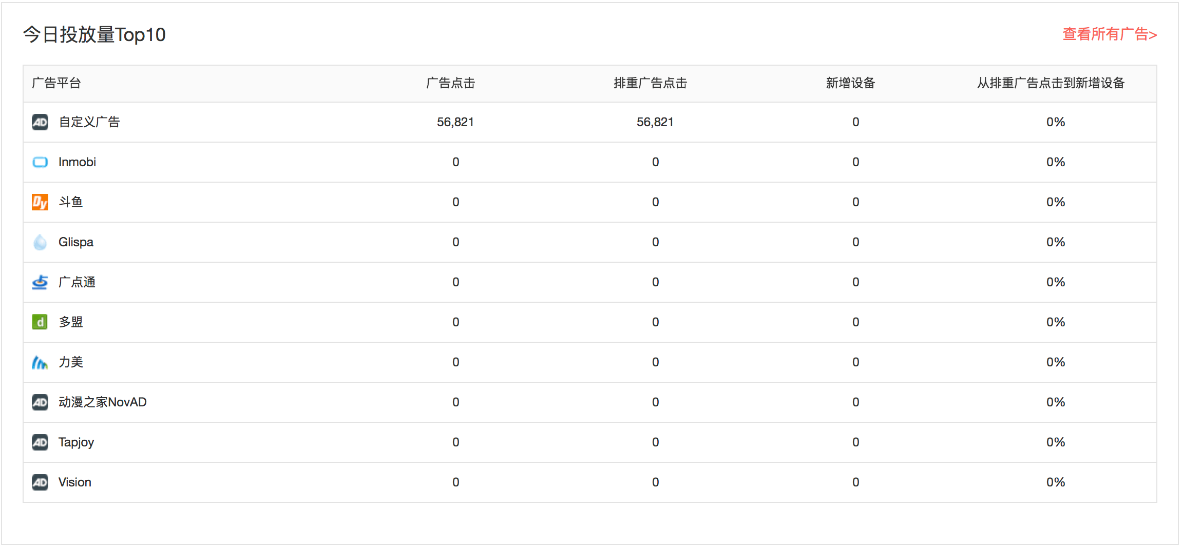 • 了解今日投放量 Top10 的广告平台