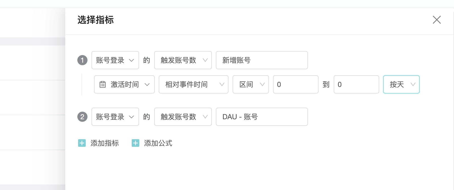 1、选择指标和筛选条件;