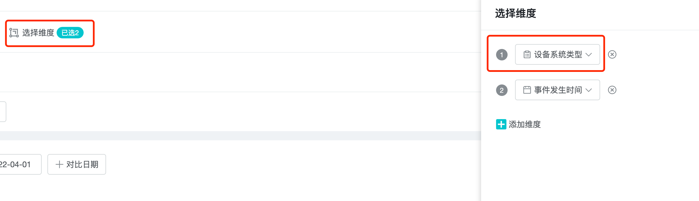 2、确定维度:iOS 和 Android 就是我们分析指标的维度,所以我们在维度选择里选择「设备系统类型」。
