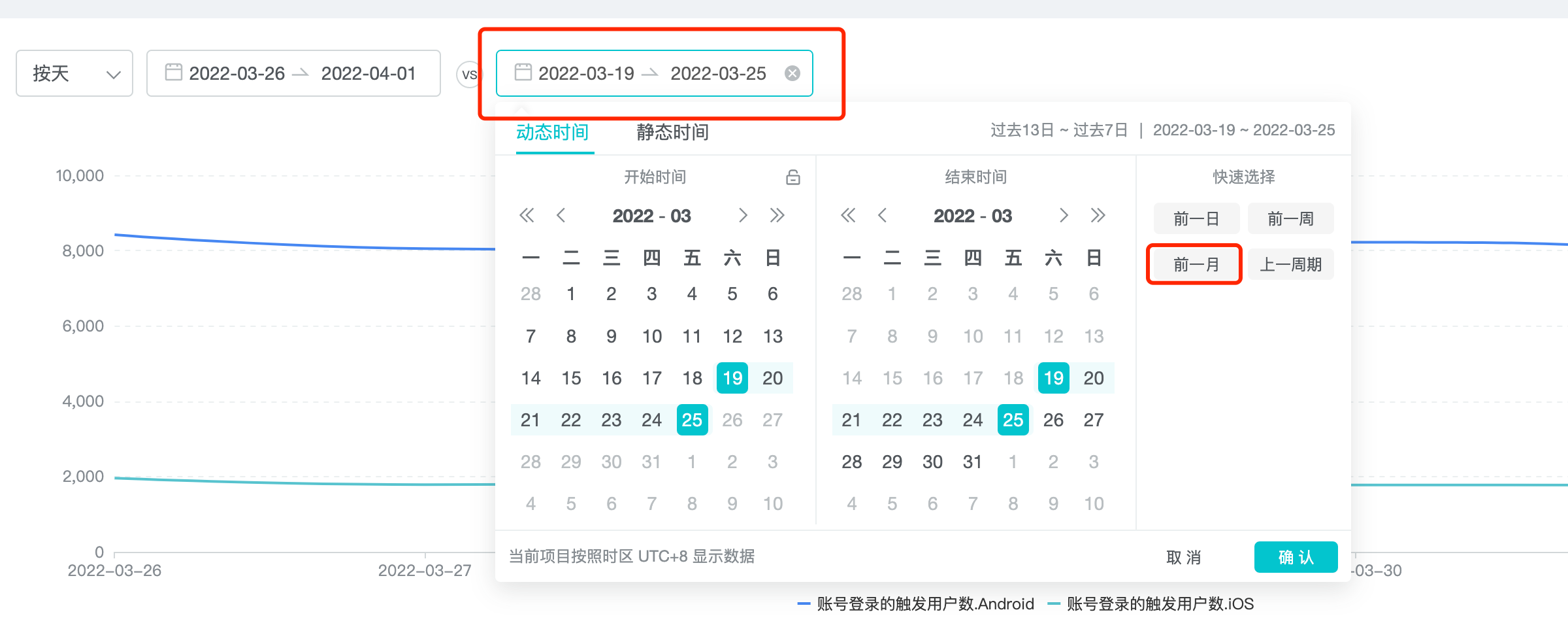 4、选择对比时间段;