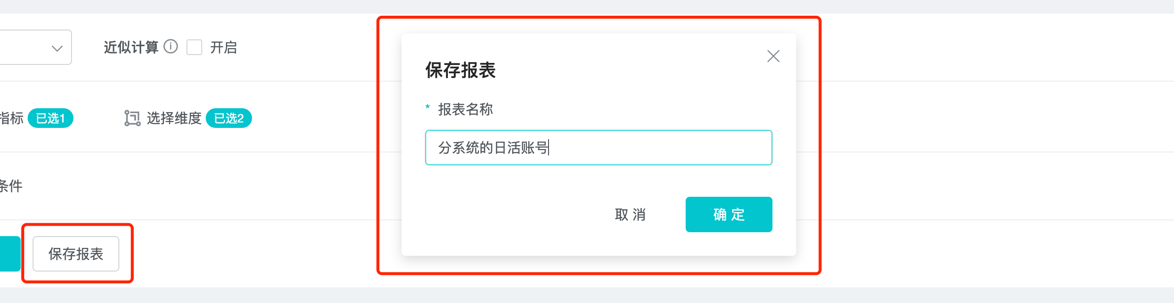 5、保存报表:我们将查询结果保存为报表。再将报表转变为看板,就可以每天方便快捷的看最终报表数据。