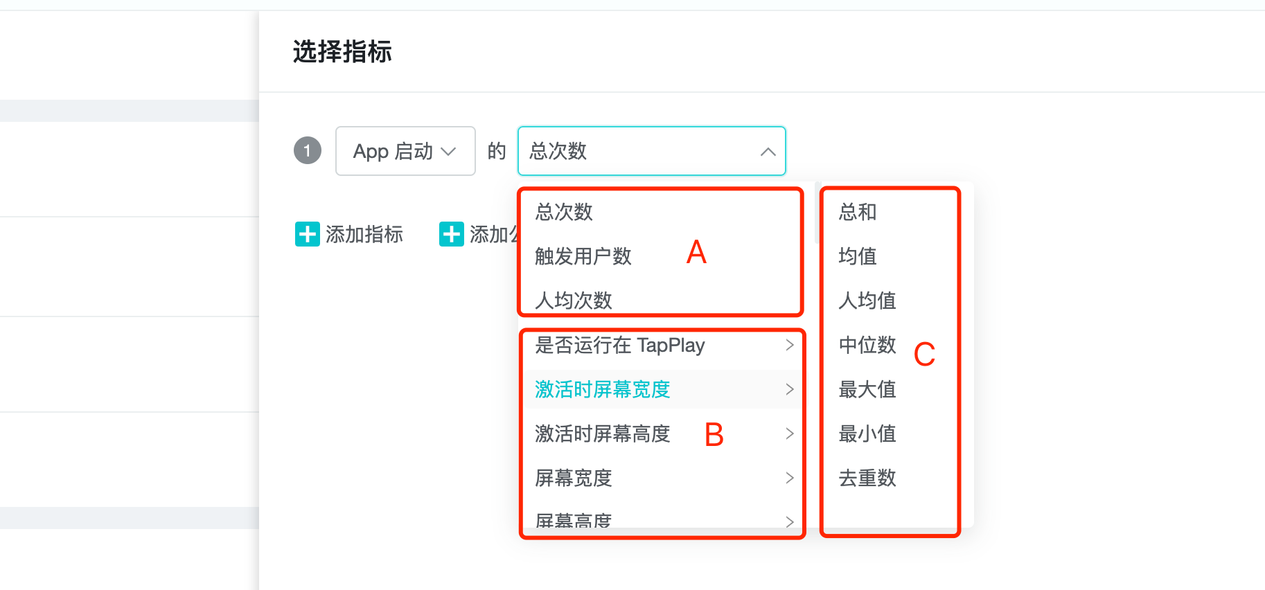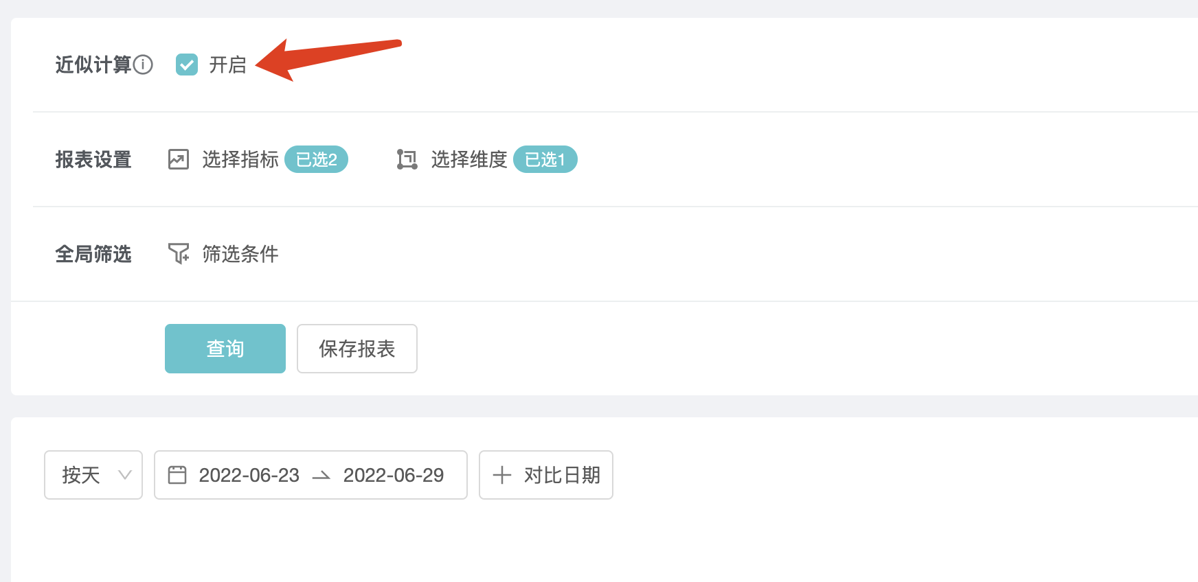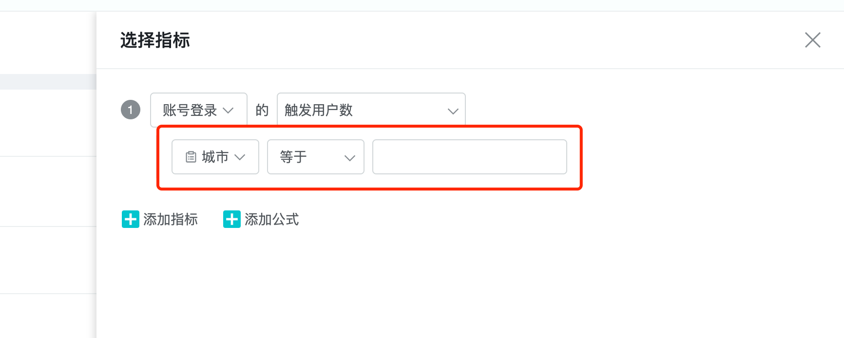 1、选择指标和筛选条件;