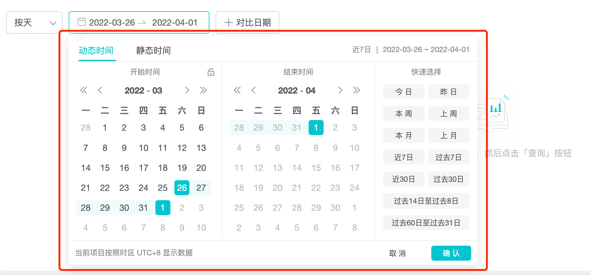4、选择对比时间段;