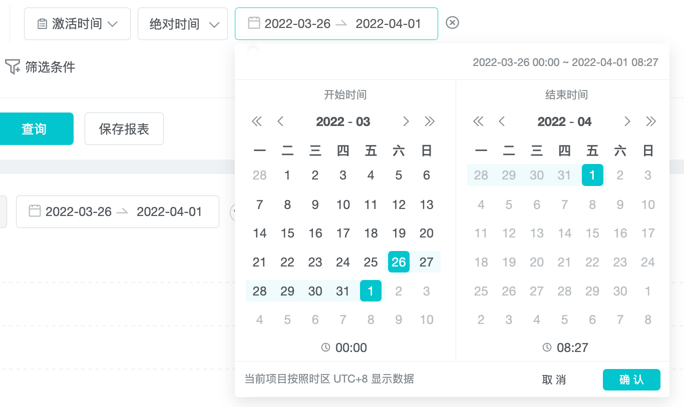 3、选择时间段;