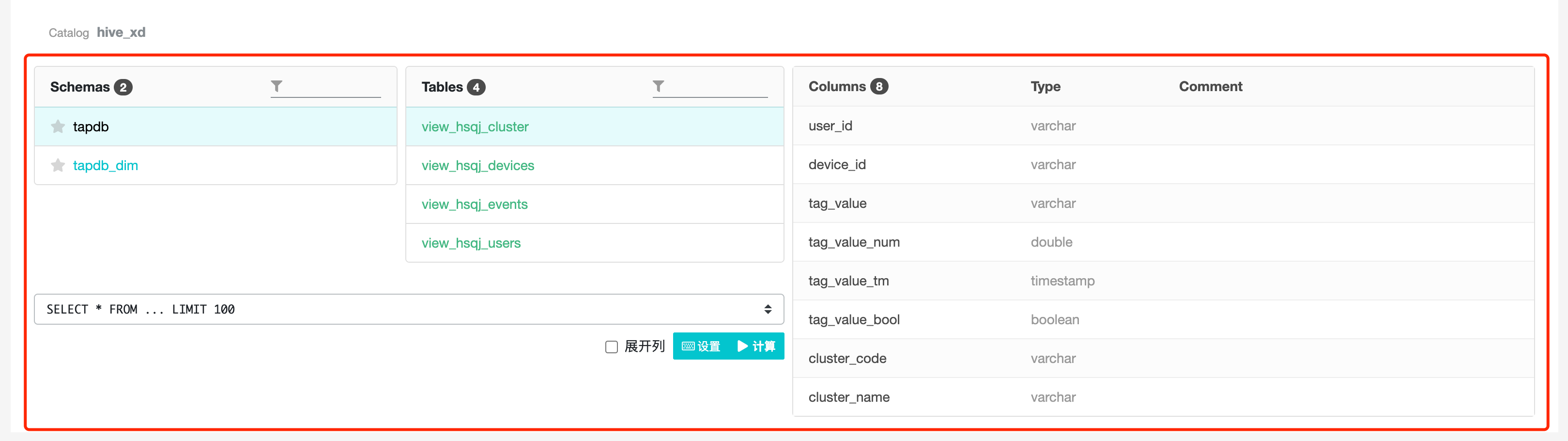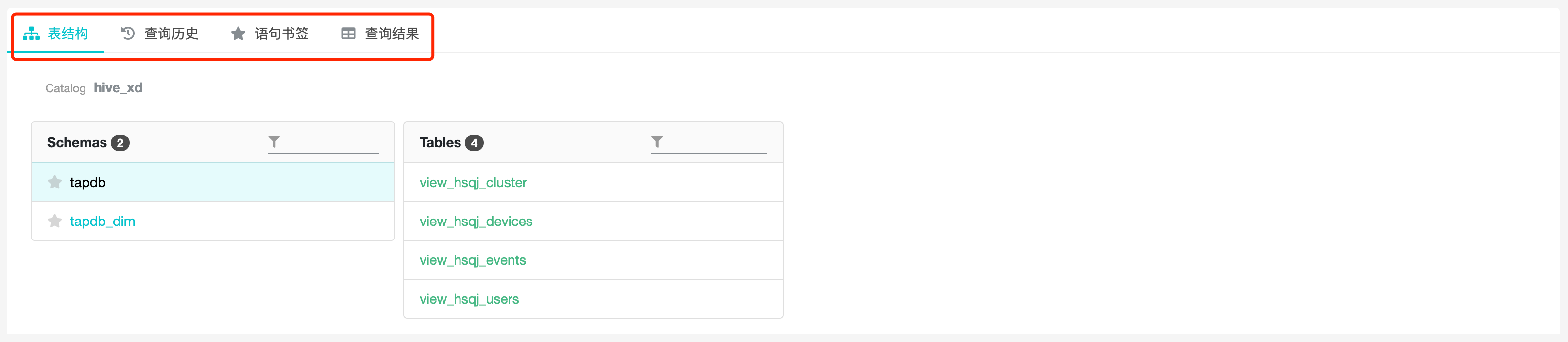 在 TapDB SQL 查询功能中,可查询库表范围如下:
